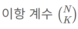 전체 집합에서 원소의 개수 n에 대해 k개의 아이템을 뽑는 이항계수(조합의 수)는 아래와 같은 공식을 갖는다.