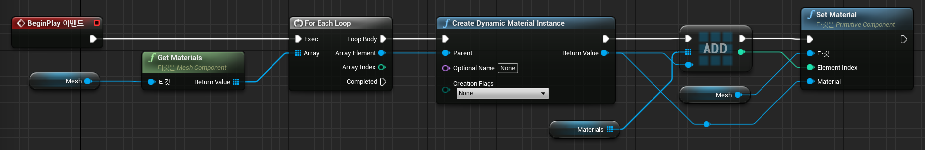 - 실행시간 이전에만 계산되어 플레이 도중 값을 변경할 수 없다. - Material Instance Dynamic