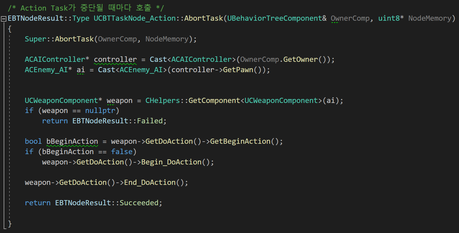 AbortTask가 끝나기 전에는 End_DoAction 함수를 무조건 호출하여 공격이 끝난 상태로 Enemy를 만든다.