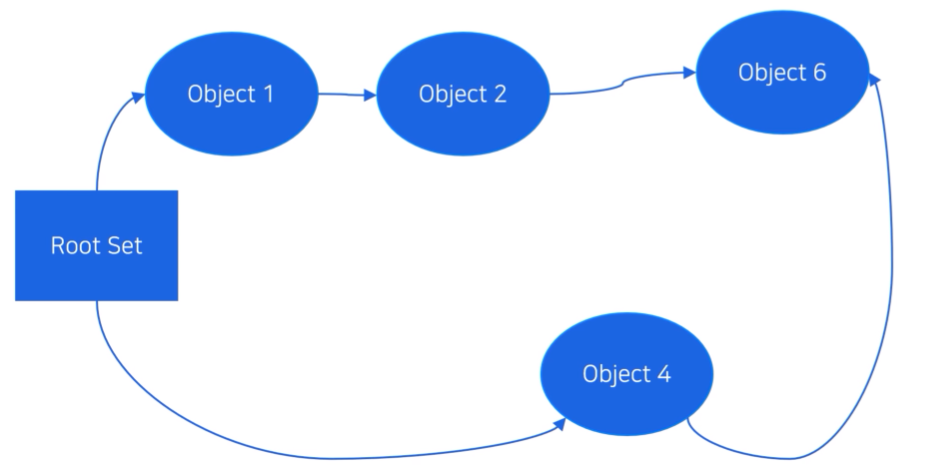 Root Set은 전역변수/지역변수/함수의 파라미터 처럼 프로그램이 1차적으로 참조하는 것으로 보면 된다.