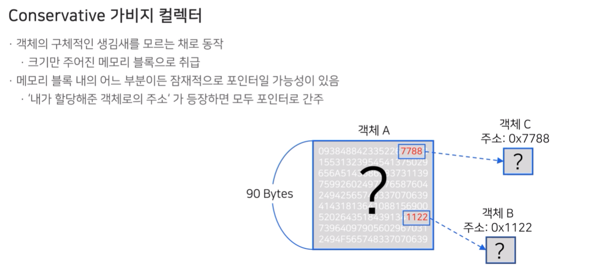 가비지 컬렉터가 이러한 객체 내에서 포인터 변수의 위치를 알아내는 방법은, C++에서 객체의 레이아웃이 주어져야 하는지 아닌지에 따라 2가지 방법으로 나뉜다.