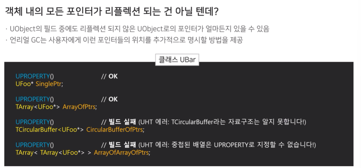 그러나, UObject의 클래스 안에서 모든 변수가 리플렉션 정보를 갖는것은 아니다.