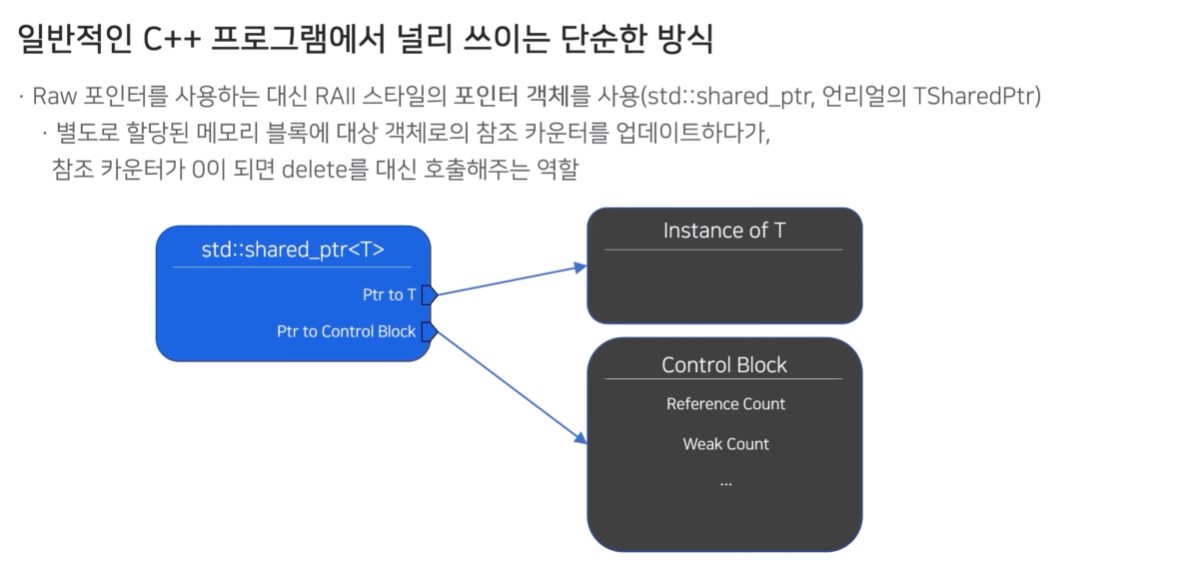 따라서, 언리얼 엔진에서는 raw 포인터로 저장된 오브젝트 레퍼런스가 자동으로 null 되거나, 가비지 컬렉션에 방지되지 않기 때문에 TWeakObjectPtr의 사용을 고려하고 있다.