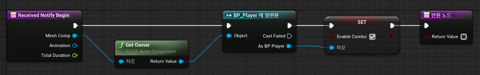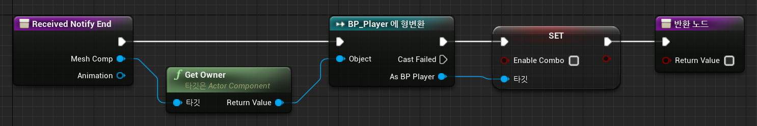 이때 콤보가 중복으로 활성화되지 않도록 Enable Combo는 바로 초기화(False)해준다.