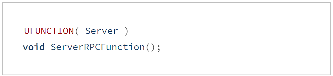 함수를 RPC로 선언하려면 UFUNCTION() 매크로에 Server / Client / NetMulticast 키워드를 붙이면 됩니다.