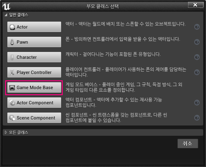 언리얼4에 새롭게 도입된 AGameModeBase는 모든 게임모드의 부모클래스가 되었다.