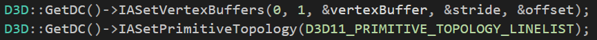 정점들의 선 목록을 생성하여 Draw 호출마다 정점 두 개가 하나의 선분을 형성하여 그리는 방식 - TRIANGLESTRIP