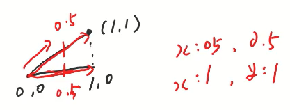 또 x로 0.5만큼 갔을때 y는 0.5만큼 갔을것이다.